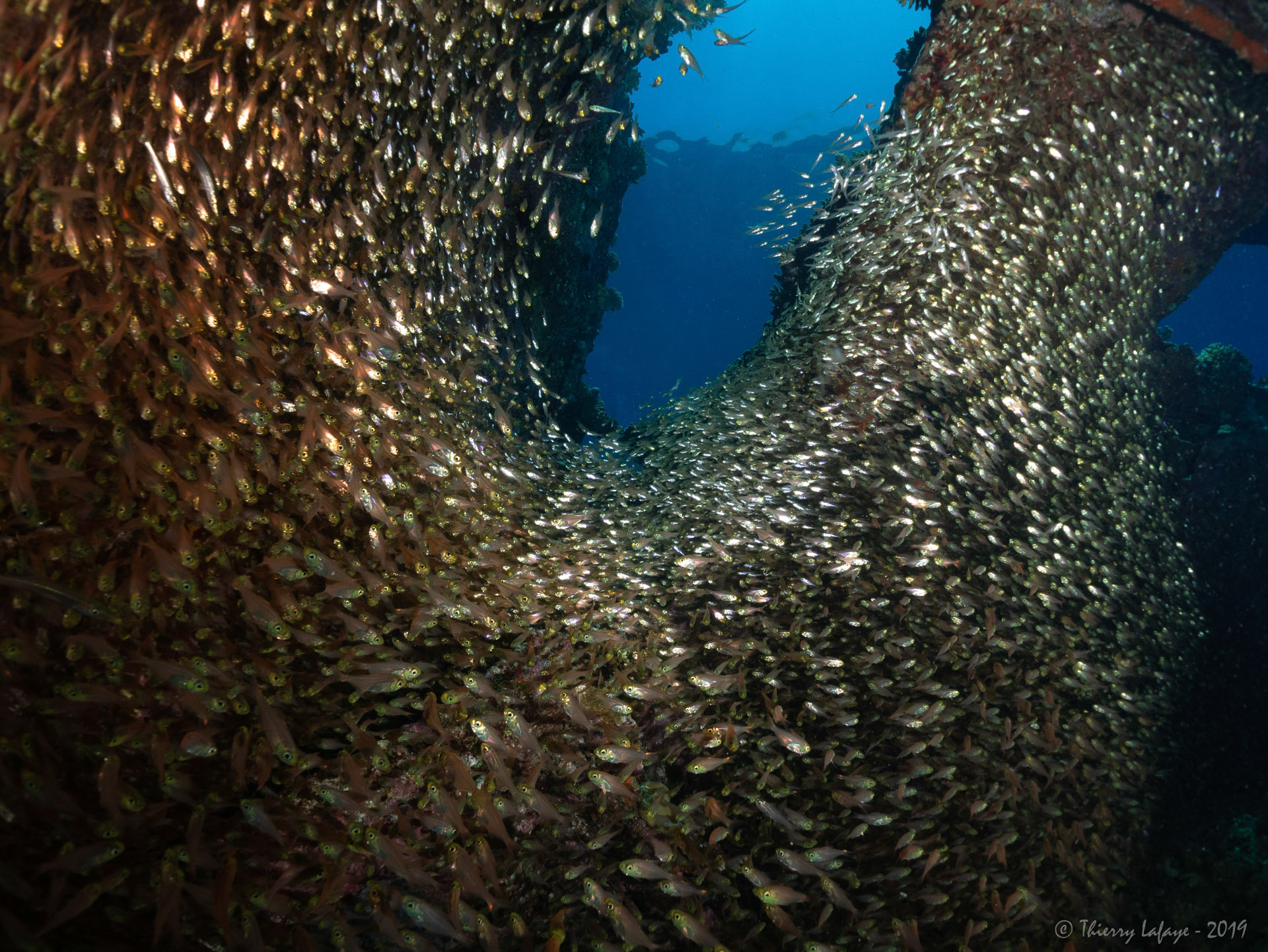 Des bancs de poissons-hachettes nains nous accueillent dès l’entrée
